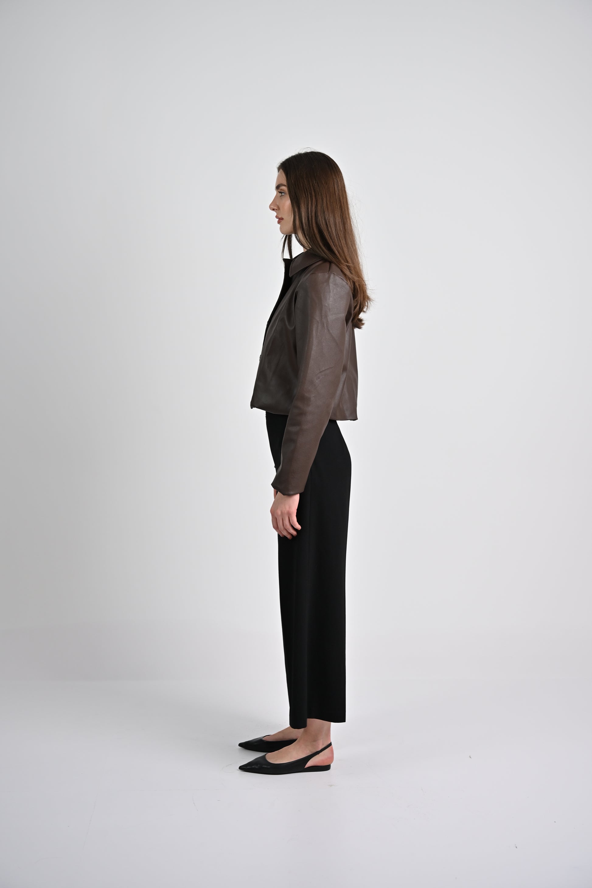 The Leather Jacket fuses bold energy with sleek minimalism — sculpted shoulders, smooth texture, and a flawless cut that moves with you. It’s not just outerwear; it’s attitude — powerful, modern, and undeniably cool.