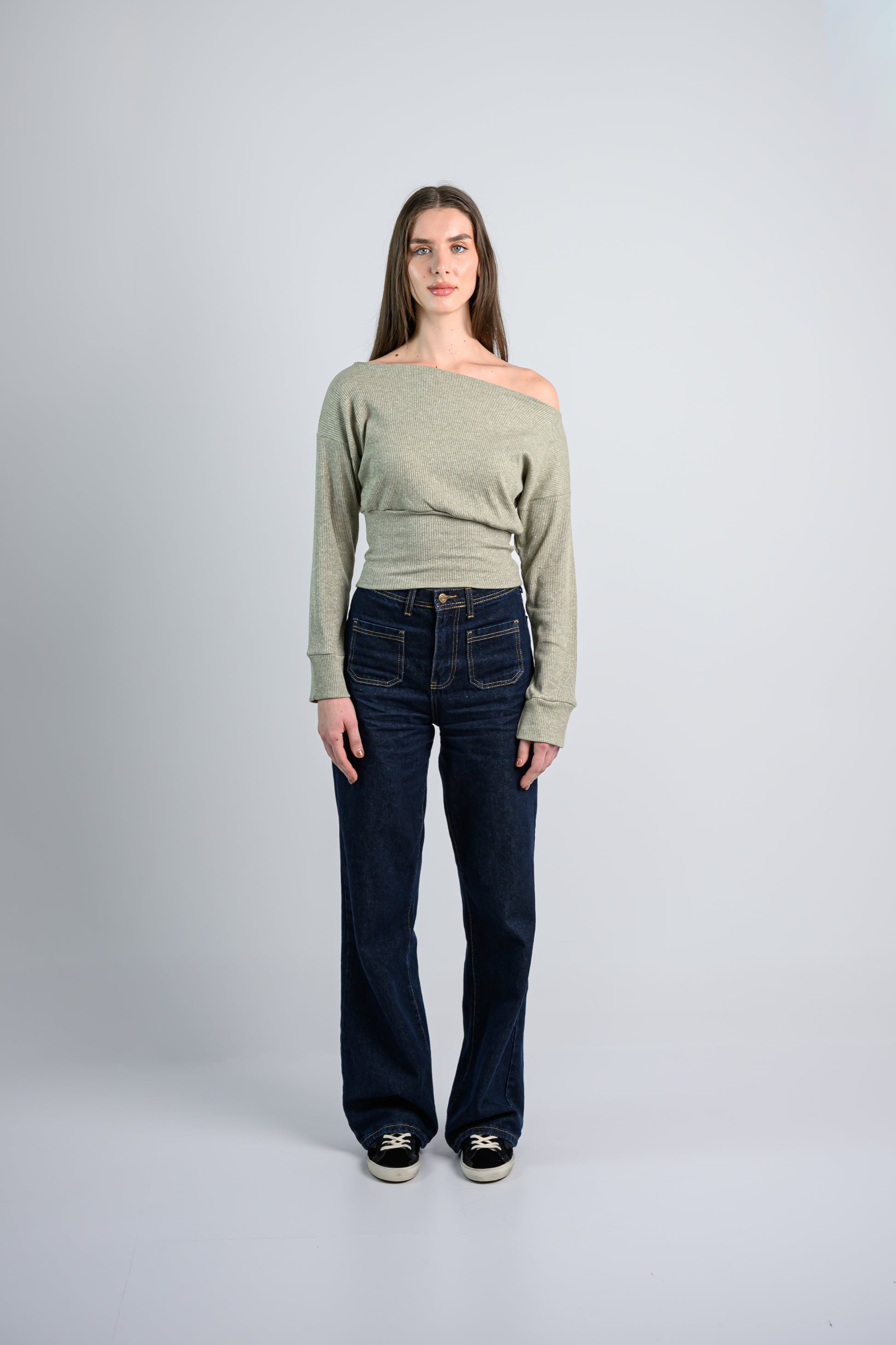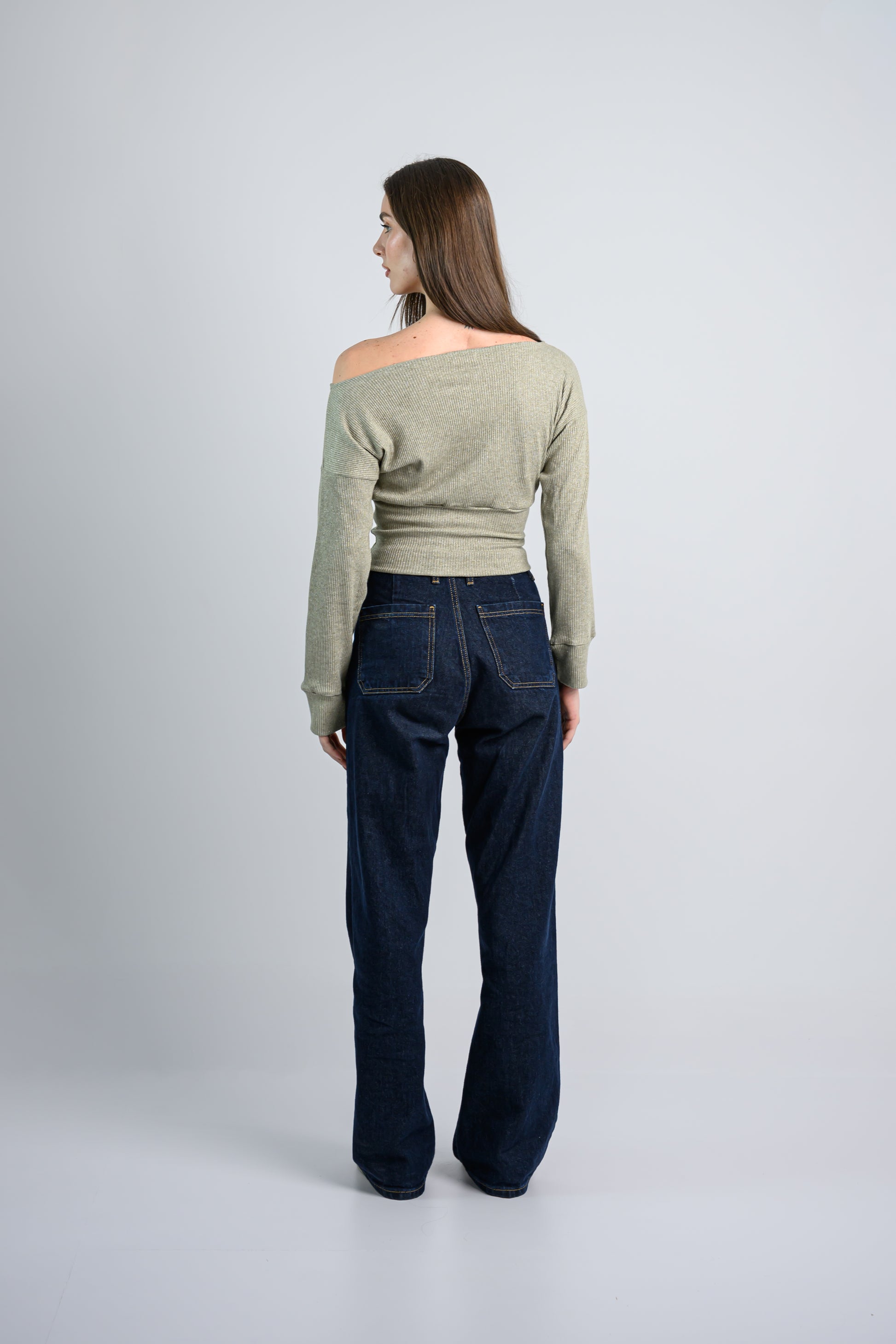 The Off-Shoulder Knit Top sculpts the body with a smooth, structured knit that falls just below the shoulder line. A quiet statement piece that defines elegance through simplicity.